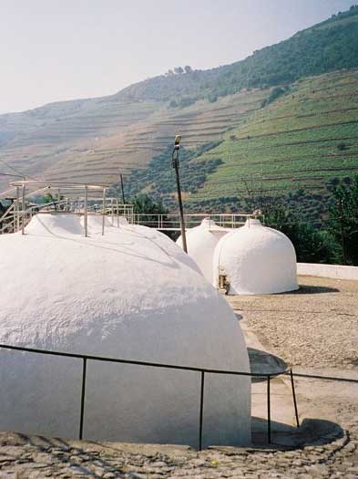 In the photograph left, it is possible to see some of the many stainless steel vinification tanks (there are more rows of tanks, to allow for plot-by-plot vinification), but also, apparently floating curiously mid-air top right, is one of their "ovis". These egg-ufos are key to what they regard as one of their most significant innovations: the introduction of gravity-flow vinification. From the moment the grapes are deposited for crushing, the juice and subsequent wine is moved only by gravity, not pumps as would be commonly found elsewhere. Each ovi (?) holds 6000 litres, which it can empty in a mere seven seconds - which, of course, is much quicker than pumping 6000 litres from one place to the next. I cannot but help wonder whether the shock to wine from being sloshed around so rapidly is really any better than if it were pumped around, like most other wineries would. To me, this emphasis on gravity really seems like nothing more than a gimmick, but they swear by it.